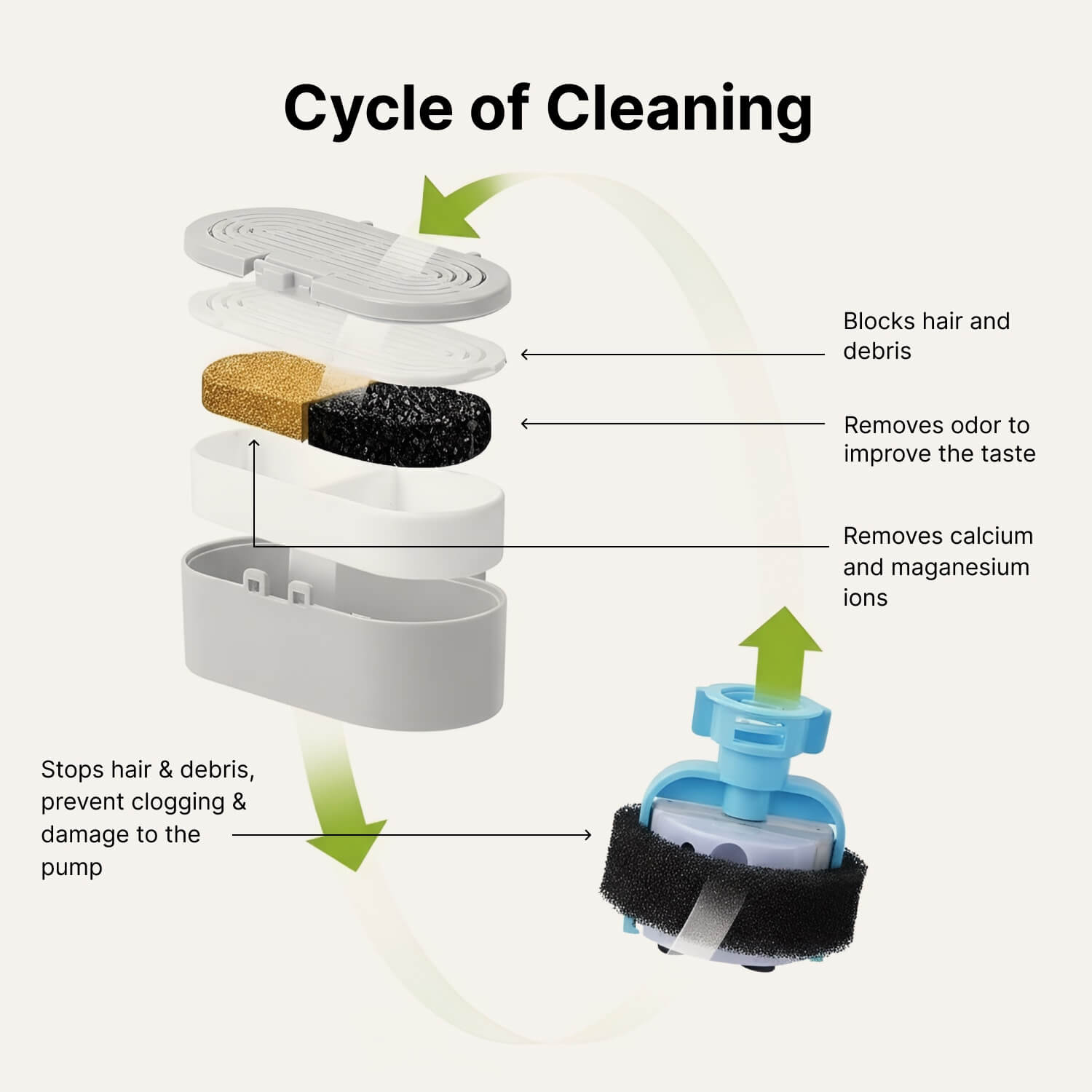 Removes dirt, debris, hair, and dust so your pet’s water stays fresh and crystal clear all day long.