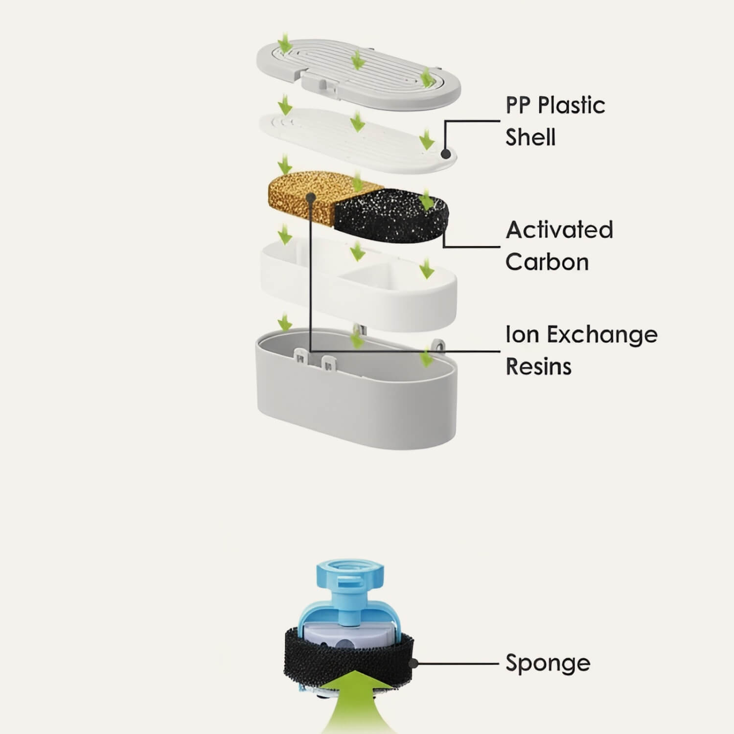 It helps trap hair, food bits, dirt, and debris while reducing odors, chlorine, and heavy metals—keeping your pet’s water clean and tasty.