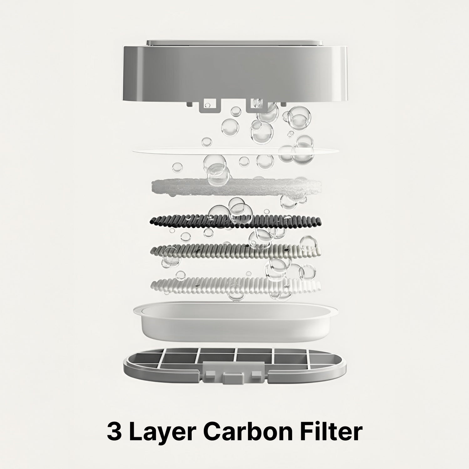 Inside every Hydrant™ is a superhero filter squad: a sponge layer for gunk, a mesh screen for fur, and an activated carbon core for the bad stuff you can’t see.