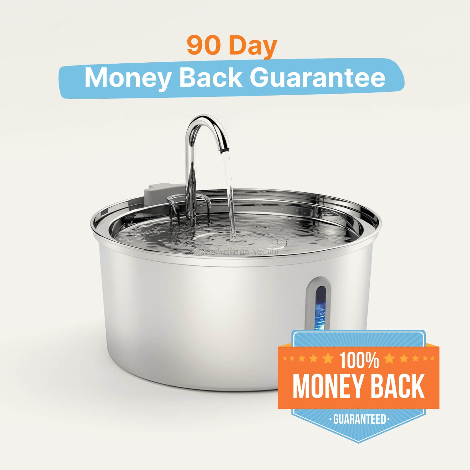 We’re so confident your dog will love the Doggy Fountain that we offer a 90-day satisfaction guarantee. If you’re not completely happy with your purchase, simply return it within a year for a full refund, no questions asked.