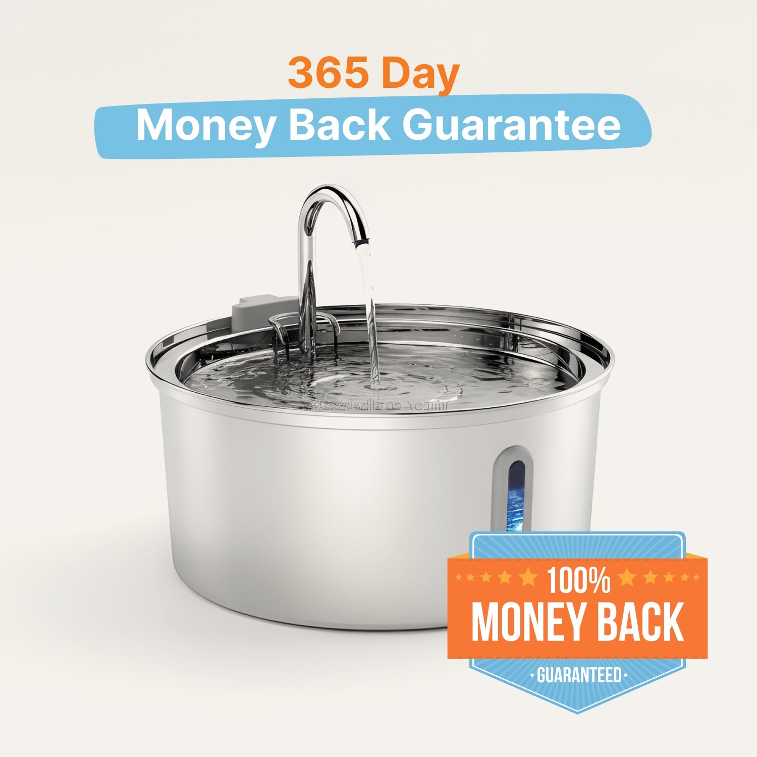 We’re so confident your dog will love the Doggy Fountain that we offer a 365-day satisfaction guarantee. If you’re not completely happy with your purchase, simply return it within a year for a full refund, no questions asked.